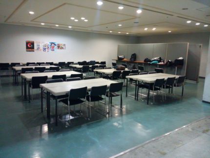 会場内には無料休憩スペースもあります(ゲームスペースを除いて全部で50席強。写真は設営時のもの)。アフターまでは長丁場。英気を養ってくださいね