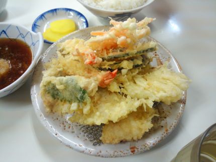 「ふじしま」の天ぷら。甘さが癖になるみそ汁と、うまみが凝縮された野菜が魅力。