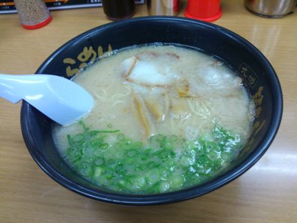 小倉駅内「ばさらか」のラーメン。筑豊系のラーメンは油の甘味が強い汁に博多系の細麺の組み合わせ。スープが口になじみやすく 汁を飲み切ってしまったが大丈夫なのだろうか……