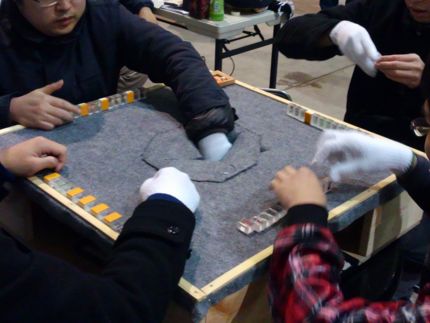 鷲巣麻雀卓。態々穴を掘ったあたりにスタッフの狂気を感じますが血は抜きません。霧雨卓もありましたが負けてもピチ(ry
